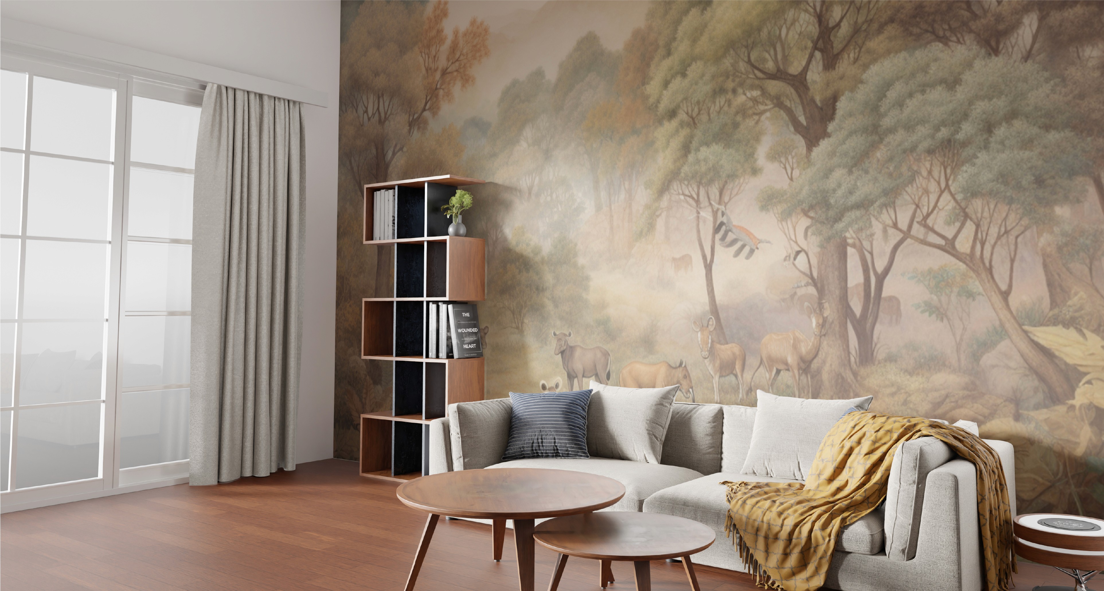 Designed immersive wall art rooted in forest themes, blending local flora, fauna, and visual storytelling for a soulful guest experience